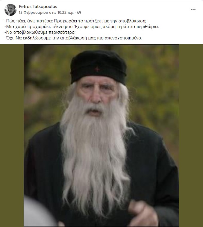 «-Πώς πάει, άγιε πατέρα; Προχωράει το πρότζεκτ με την αποβλάκωση;